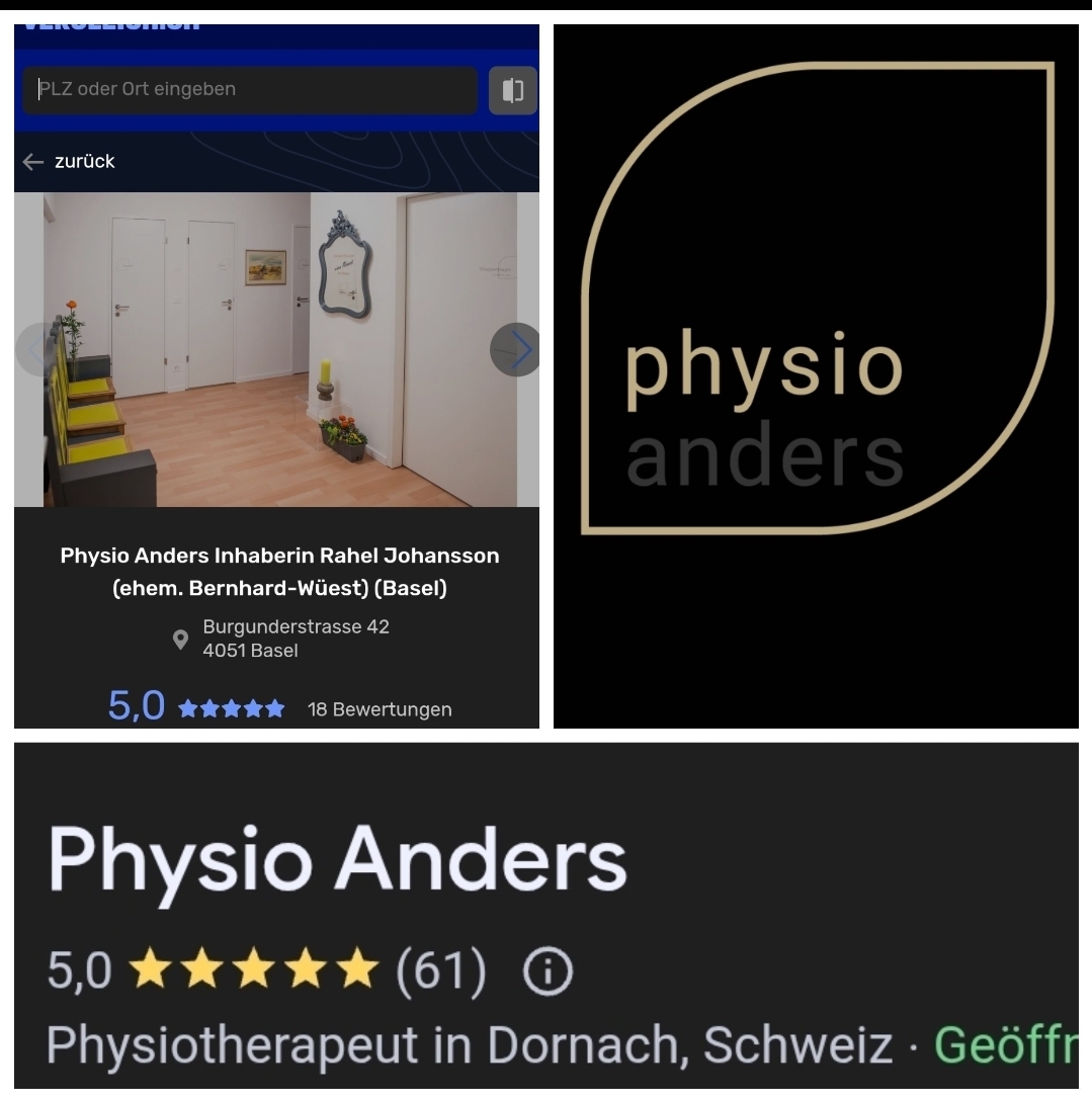 Weil neben der Mund-zu-Mund-Propaganda hat auch die Beurteilung im Netz eine grosse Bedeutung hat, freue ich mich sehr über weitere Feedback von Ihnen; wie haben Sie die Leistungen, die Räumlichkeiten und den Service von Physio Anders erlebt?