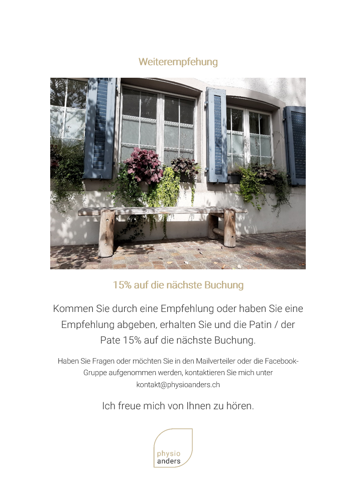 Auf Facebook erhalten Patienten und Patientinnen, sowie Klienten und Klientinnen Informationen über meine neusten Angebote.